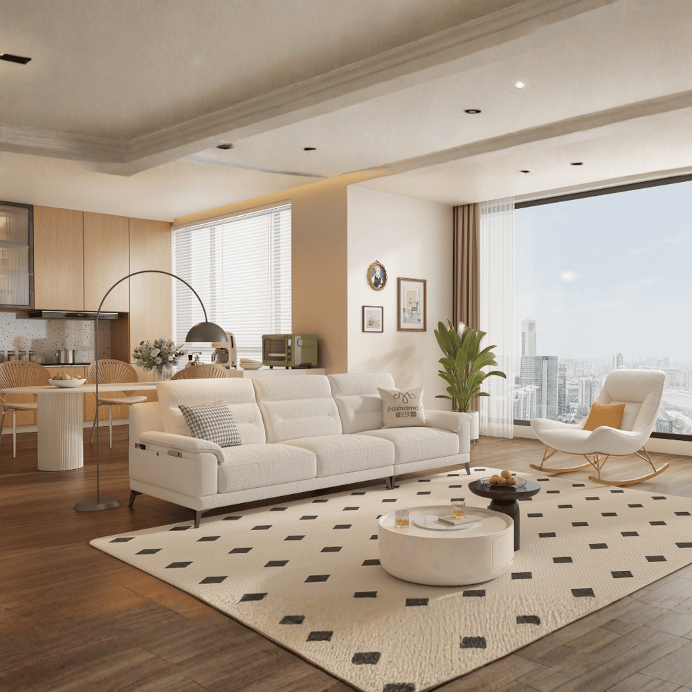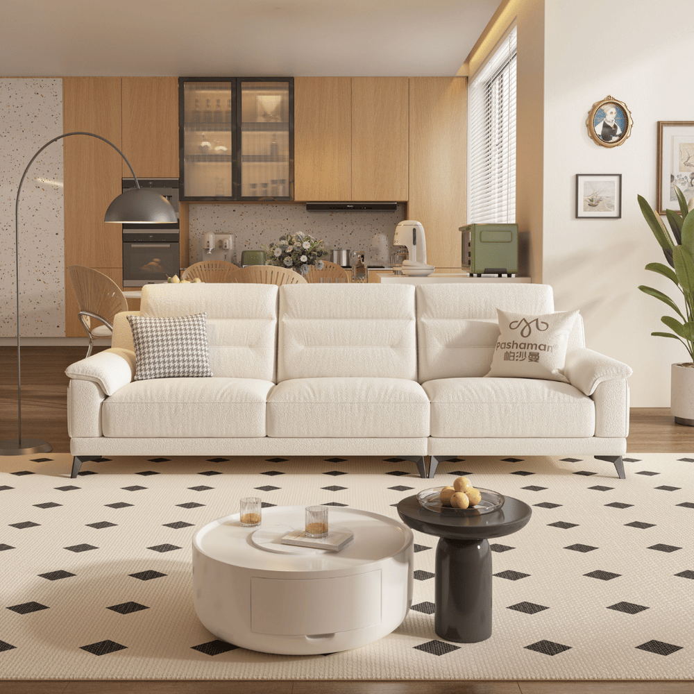 Minimalist Base: The sofa is supported by low-profile legs, giving it a solid, grounded appearance that complements modern decor.