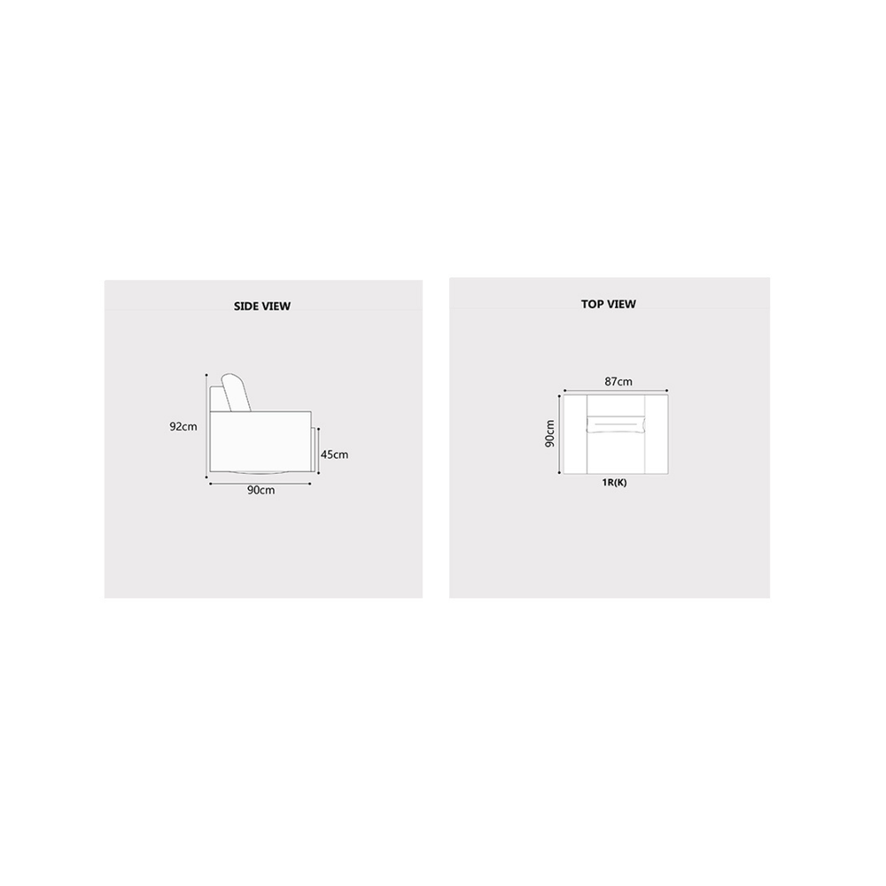 • 1R (K): L 87 cm × W 90 cm × H 92 cm • Seat Height: 45 cm