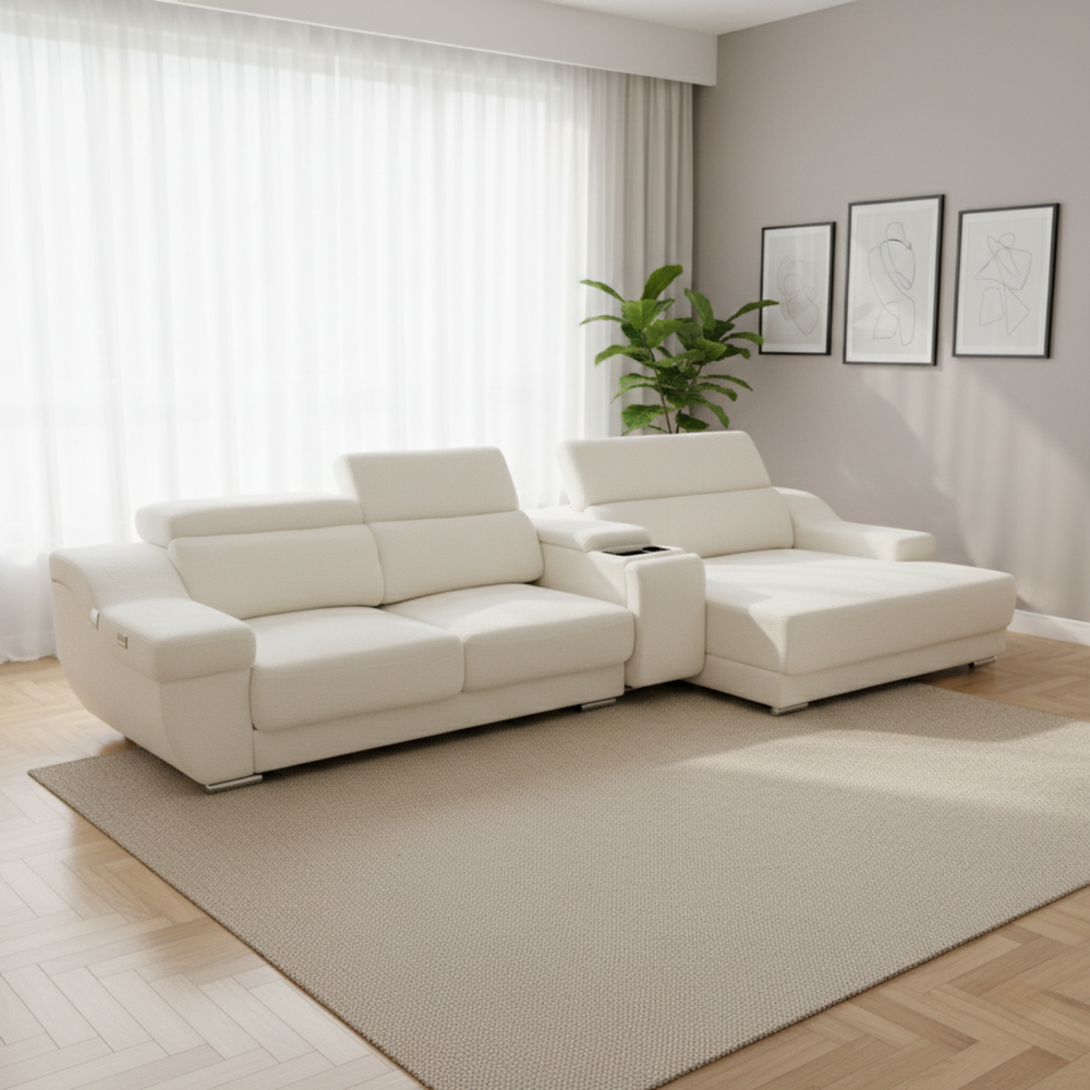 ✔ Adjustable seat depth (slider) for customizable lounging ✔ Adjustable headrests for tailored neck and head support ✔ Built-in storage console with wireless charging dock ✔ Pet-friendly, anti-scratch, and easy-clean upholstery ✔ Spacious seating with a modern, low-profile silhouette ✔ Designed to suit modern, minimalist, and Scandinavian-style homes