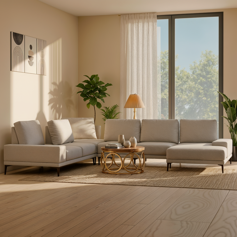 The Gavon Fabric Adjustable Backrest L-Shaped Corner Sofa by Esteller brings flexible comfort, everyday durability, and modern elegance together — a refined seating solution designed for real homes and real living.
