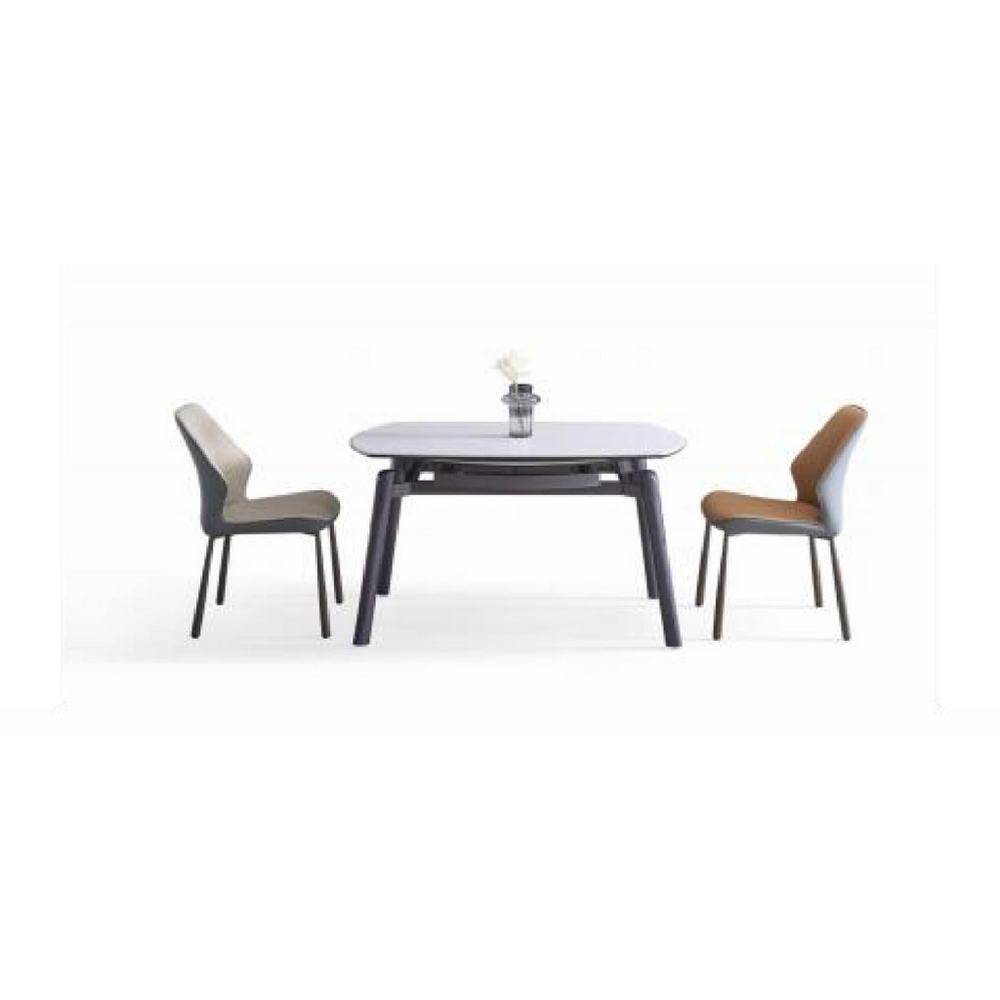 It incorporates an extension mechanism to seamlessly expand the table surface for larger gatherings. This flexibility is ideal for space optimization in modern homes.