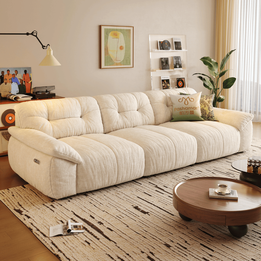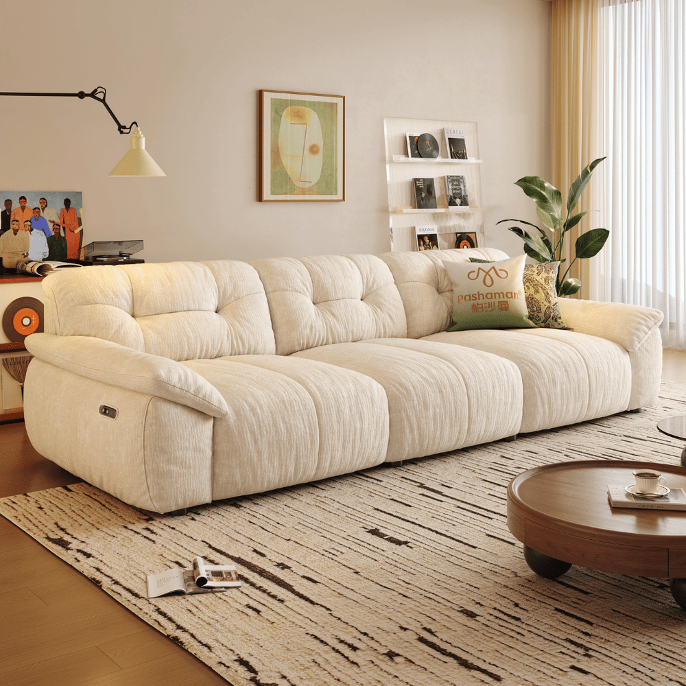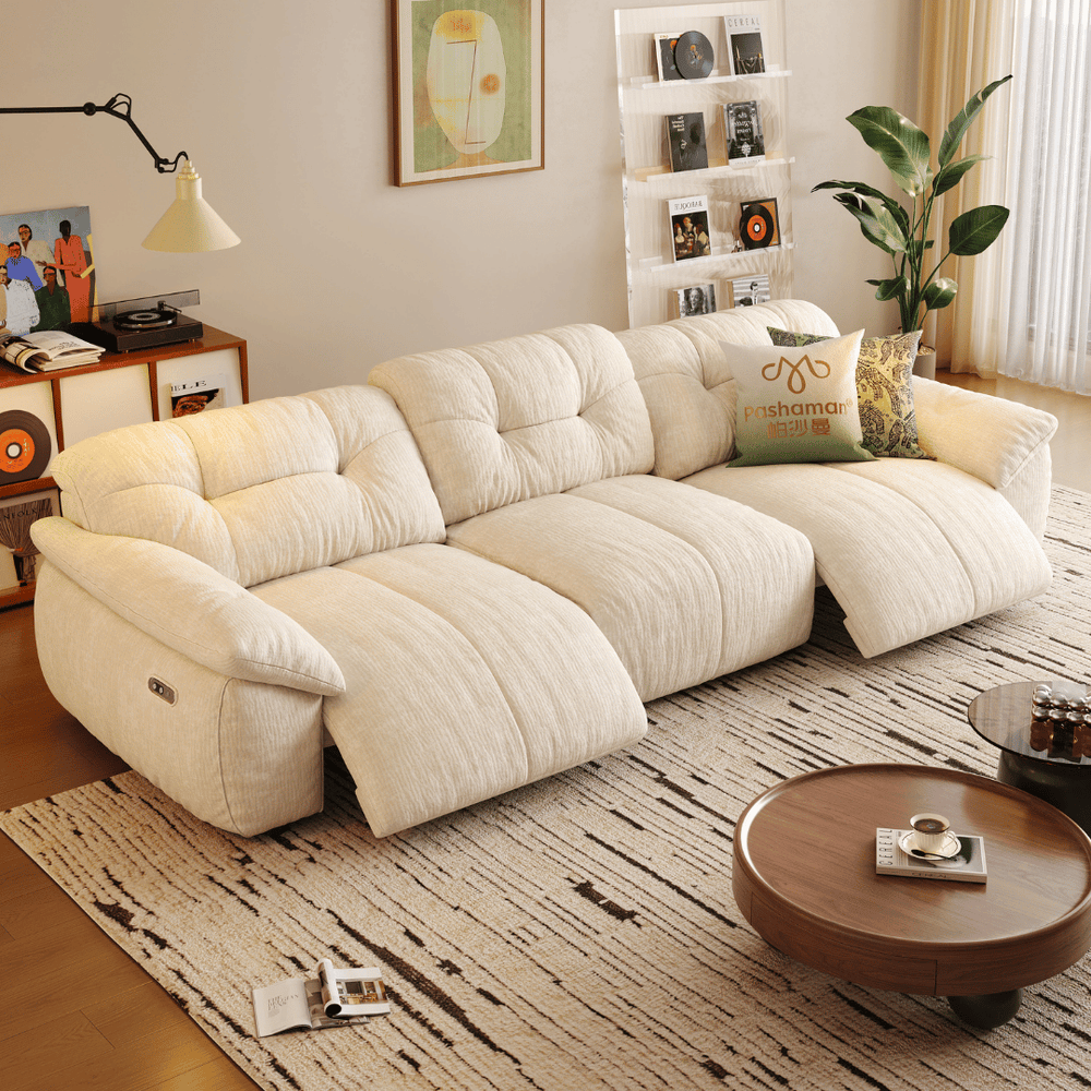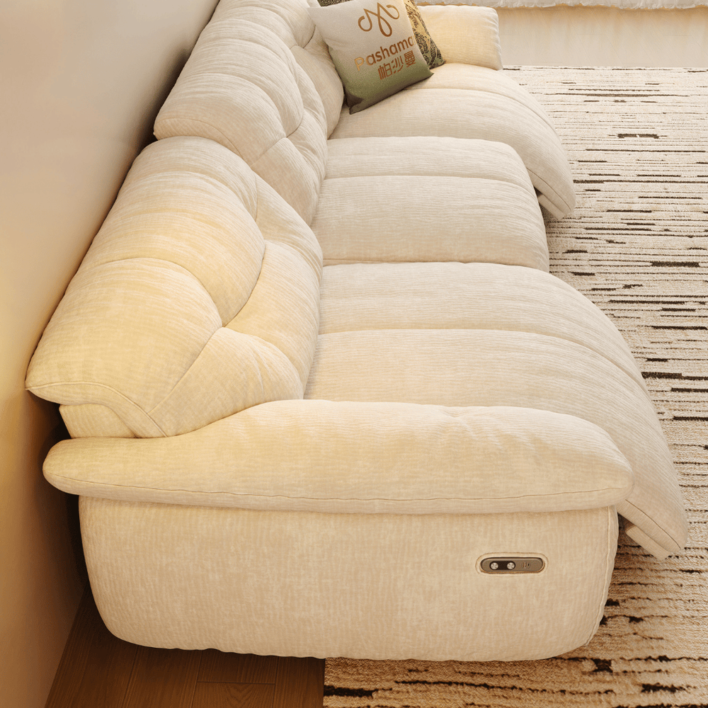 Seamless Power Reclining: Experience relaxation at the touch of a button. The sofa features a smooth, powered reclining mechanism that lets you effortlessly transition to your perfect lounging angle—from sitting upright to a full, comfortable recline.