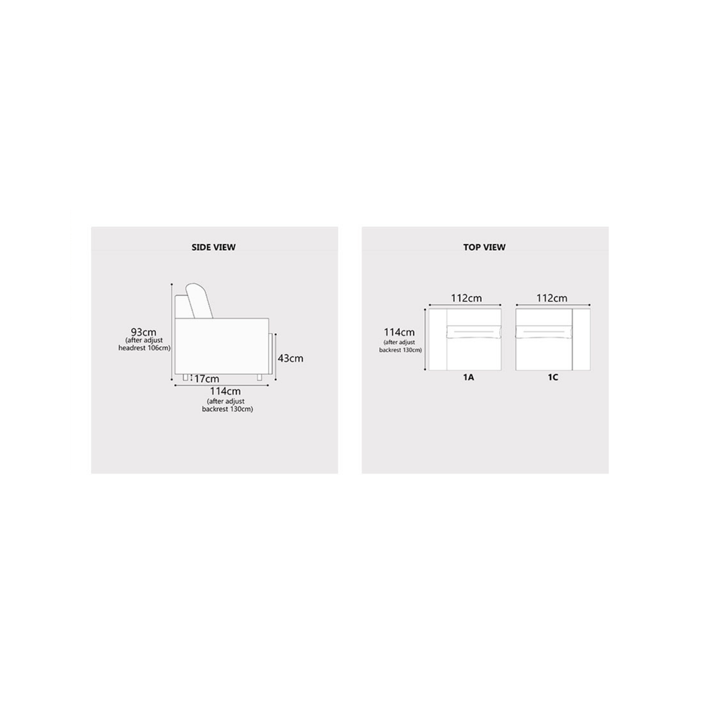 • Width: 114 cm (standard) / 130 cm (after adjusting backrest)