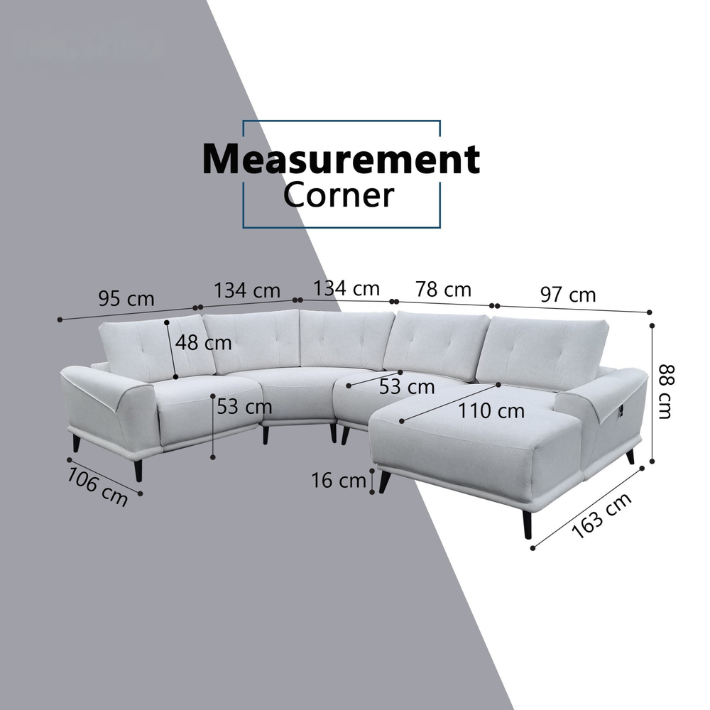 Engineered for personalized comfort, Nestor features a smooth electric recliner, height-adjustable headrests, and a multi-position backrest system that lets you shift seamlessly between upright support and lounge-ready relaxation. A built-in USB plug keeps your devices charged without clutter, while the spacious L-shaped layout maximizes seating in both HDB and condo-sized living rooms.
