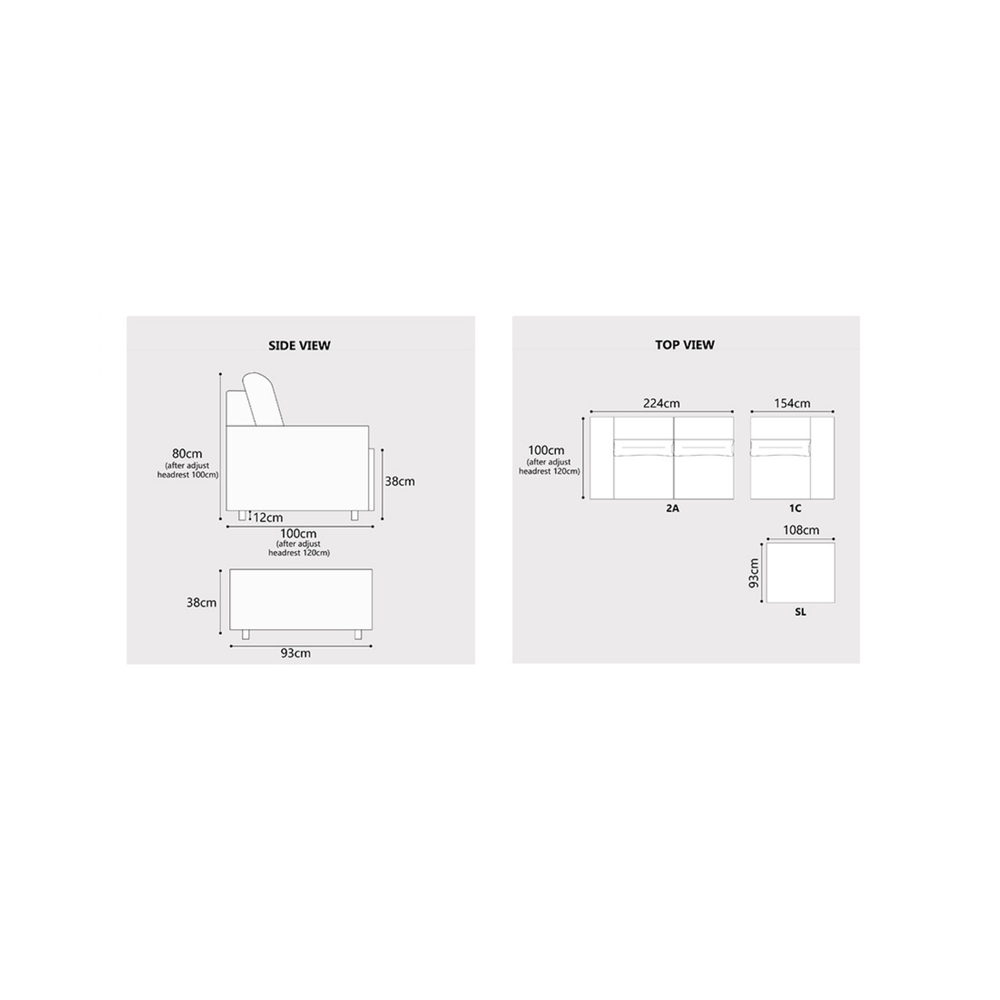 • 2A Module: L 224 cm × W 100 cm (120 cm after adjustment) × H 80 cm (100 cm after adjustment)