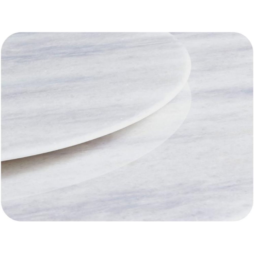 Tabletop Material: The table features a luxurious Natural Stone tabletop, available in white with subtle gray veining or a simple clean white top. The round shape promotes easy conversation and flow.