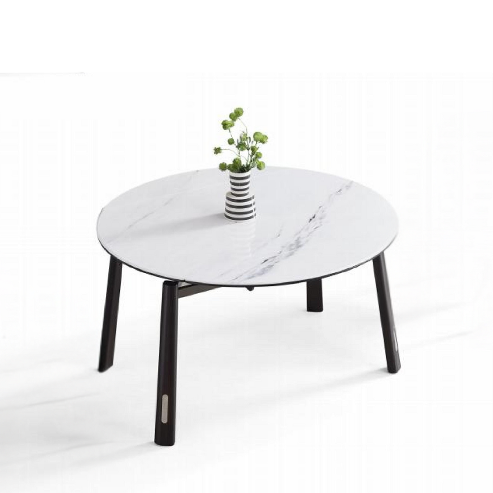 Extendable Round Design: The table maintains a round configuration in its compact form, which is perfect for promoting easy conversation and a communal dining feel. It includes a smooth extension mechanism to increase the dining capacity when hosting larger gatherings, making it a flexible and space-saving solution.