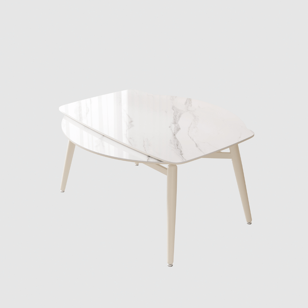 Sintered Stone Tabletop: The surface is made from White Glossy Sintered Stone, which provides the luxurious look of marble but with superior durability. It is highly resistant to: